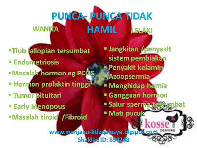 Ini disebabkan, terdapat banyak faktor dan sebab2 sukar/tidak boleh hamil. Antaranya: